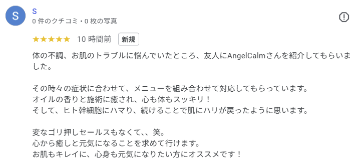 体の不調、お肌のトラブルに悩んでいたところ、友人にAngelCalmさんを紹介してもらいました。