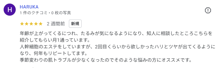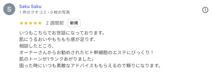 人幹細胞のエステをしていますが、2回目くらいから欲しかったハリとツヤが出てくるようになり、何年もリピートしてます。